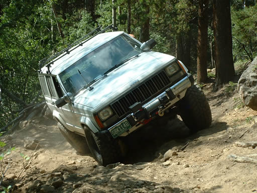 TRAIL DAMAGE: XJ: Bent Rear Bumper and left windshield post spotlight - Holy Cross. Rear door ding - Son on Empire Loop.